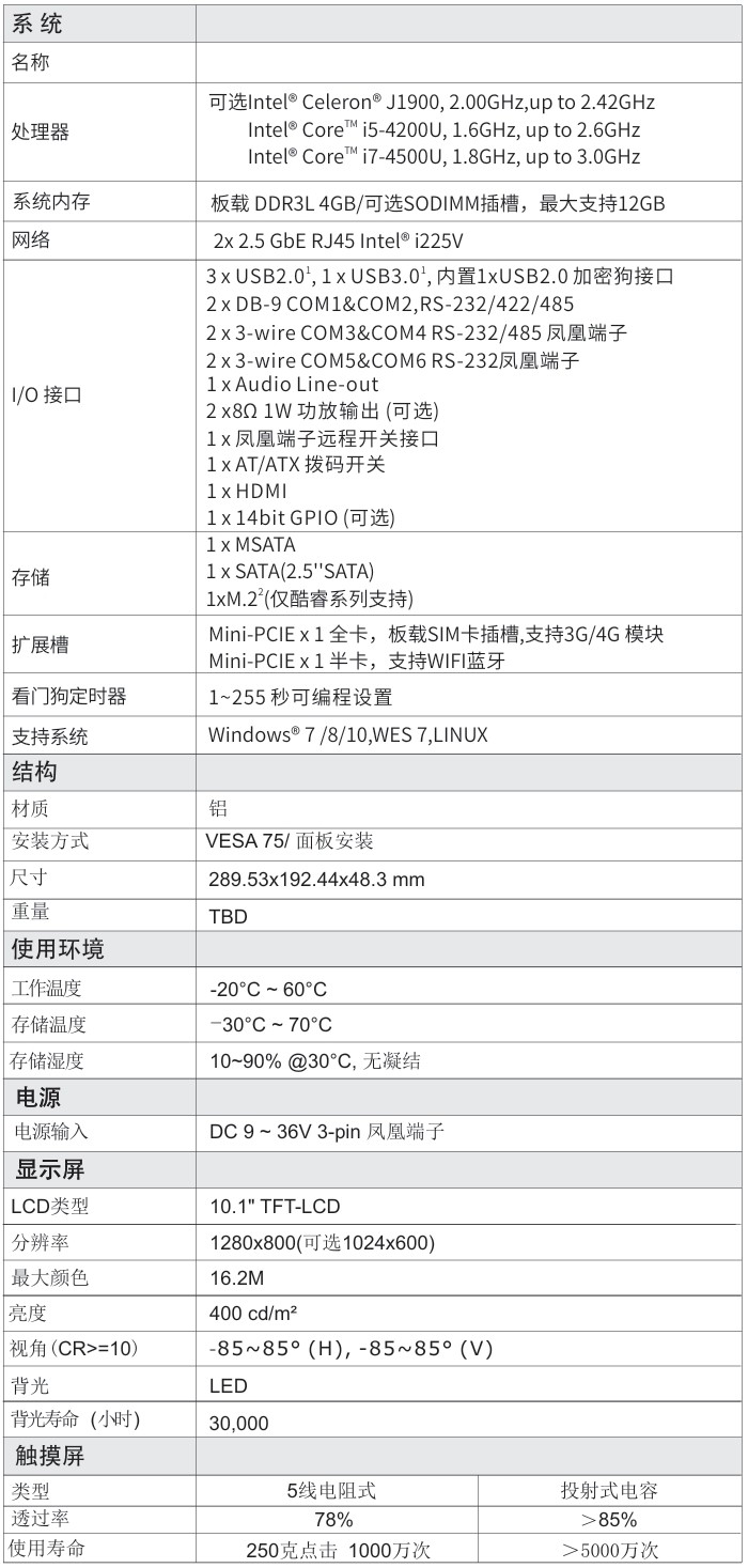 可选Intel J1900/i5-4200U/i7-4500U CPU