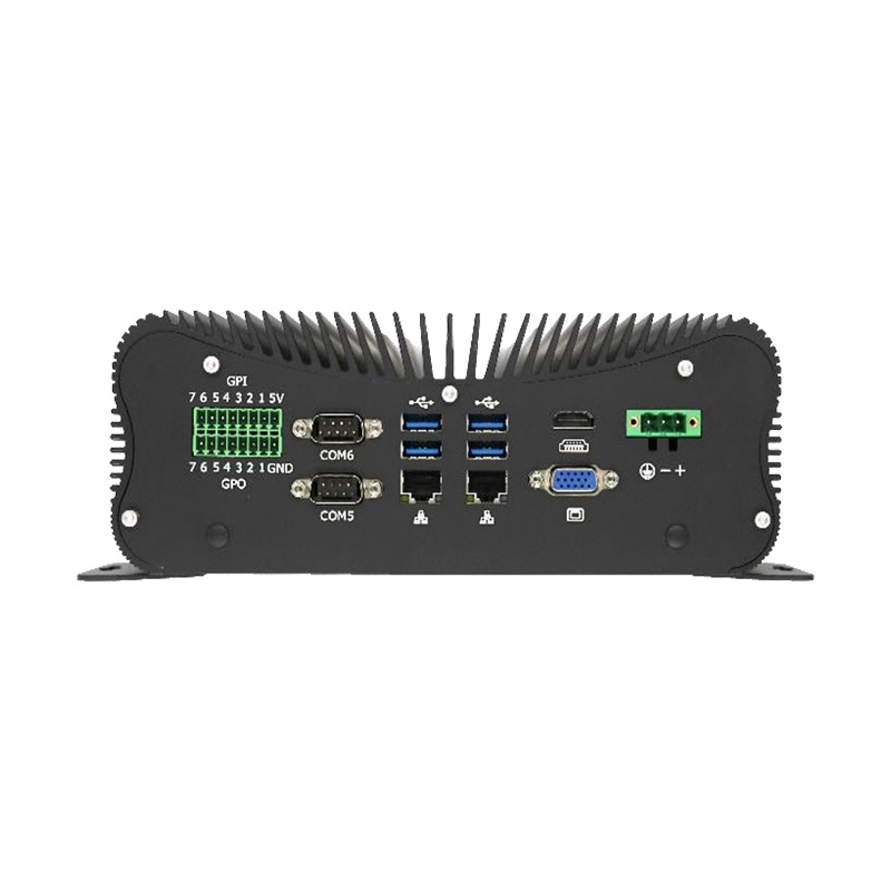 Network: 2 x GbE RJ45 Intel i211/i210, I/O interface: 4 x USB3.0, 2 x USB2.0, 6 x DB9 COM (4 of which support RS485/RS422), 1 x HDMI, 1 x VGA, 1 x PS2 (keyboard and mouse in one), 14 x GPIO (7 inputs, 7 outputs), 1 x Power Button, 1 x Reset Button, 1 x Clear CMOS Button, 1 x 3pin Phoenix terminal power base, support 9-36V power input, 1 x headphone port, 1 x microphone, 1 x dip switch, Support ATX/AT boot mode selection, 2 x antenna interface, for WIFI/3G/4G
